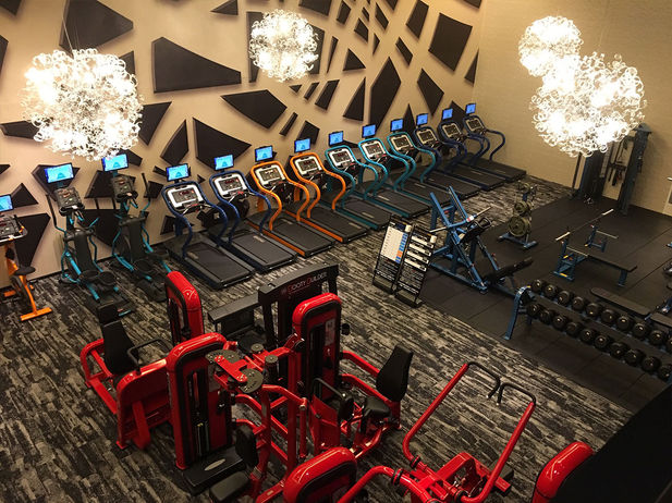 2018年9月OPEN メガロス旗艦店としてレインボーカラーにてマシン装飾。高さ4mの開放感があるジムエリアは、シャンデリアが目立ち高級感漂う施設。
